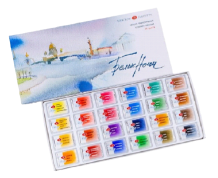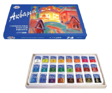 3) Акварель художественная в кюветах: фирма Гамма, 24 цвета (стоимость дешевле), фирма Невская Палитра «Белые ночи» (стоимость дороже)